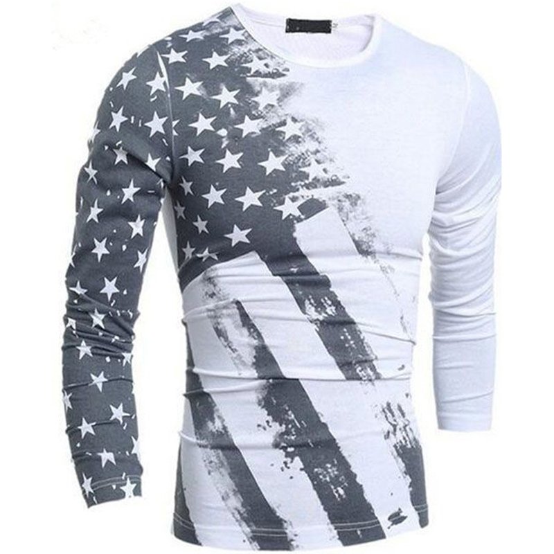 American Flag Printed Grey Full Sleeve T-Shirt by Zarakh Astar Sports